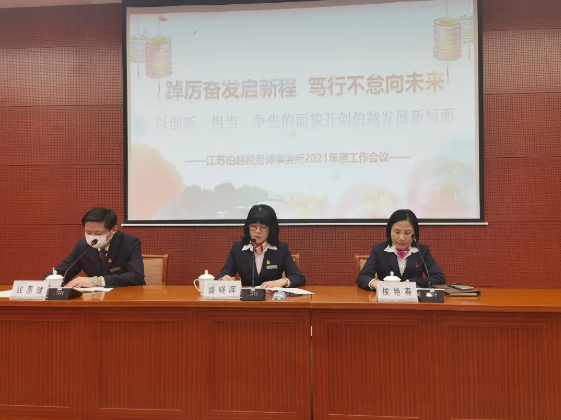 1月28日下午,江苏伯越税务师事务所在保税区滨江大厦召开2022年工作会议。此次会议总结了事务所2021年工作,部署了2022年计划,表彰了优秀团队和个人,动员全体员工统一思想、明确目标、狠抓落实,努力推动我所各项工作迈向新的台阶。伯越全体员工参加了此次会议。